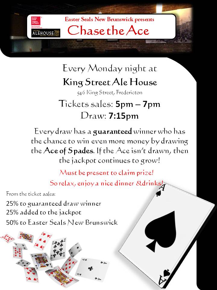 - Chase the Ace tickets: 1 for 2$. 3 for 5. 10 for $10.